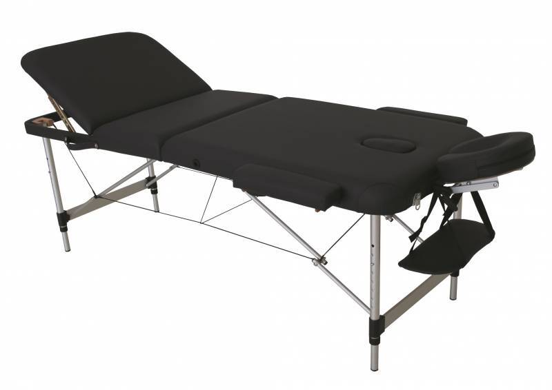 Massagetafel Gina inclusief een luxe aluminium onderstel, tevens direct lichtgewicht met rugleuning, inclusief luxe draagtas.